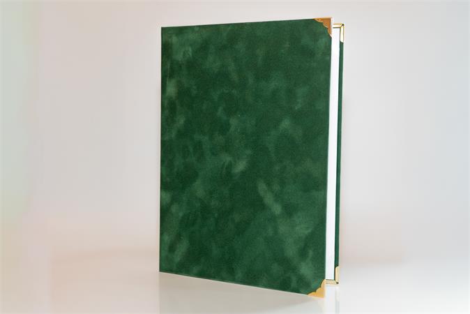 Oklevéltartó, A4, exkluzív, plüss, 4 fém sarokkal, zöld