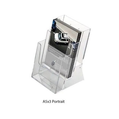 A 3 rekeszes asztali és fali szórólaptartó praktikus és sokoldalú megoldás többféle kiadvány egyidejű, rendezett megjelenítésére.